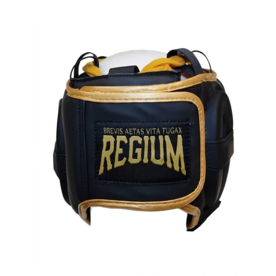 Sistema de Ajuste Triple Gold: Consigue una fijación inamovible gracias a su cierre de velcro posterior robusto, hebilla de seguridad en la barbilla y cordaje superior en un distintivo color dorado.